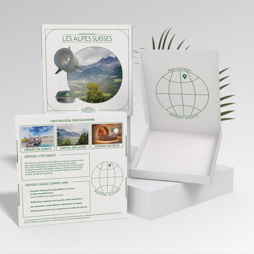 Pour mon TFE, j’ai décidé de créer une marque de croisières écologiques en zeppelin, un projet qui m’a valu une mention lors de l’obtention de mon diplôme.